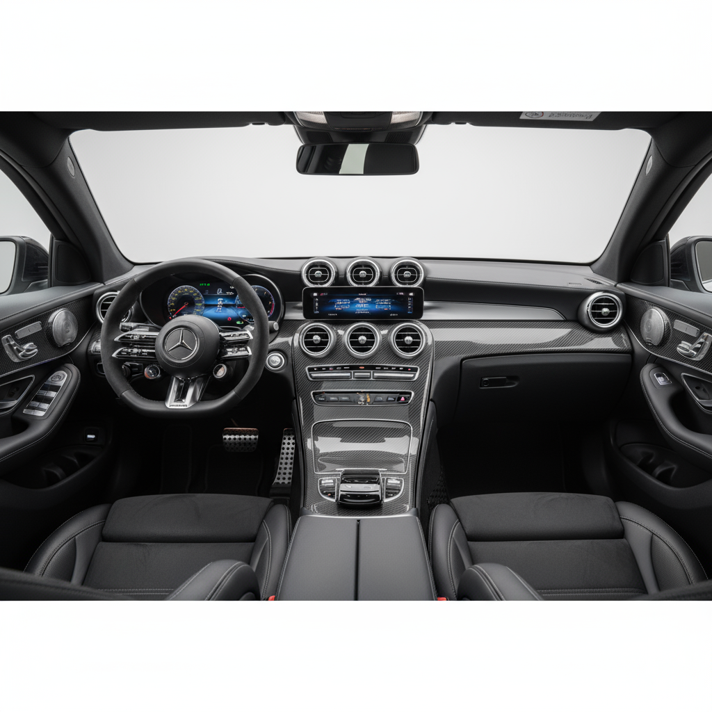 メルセデス・ベンツGLCクーペ2 PHEVのデザインは、間違いなくその強みの一つです。傾斜したルーフラインと筋肉質なリアを持つクーペシルエットは、威厳とスポーティな存在感を与えます。異なるサイズのタイヤ(フロント265/45 R20、リア295/40 R20)を備えた20インチホイールなどのAMGディテールは、そのダイナミックなキャラクターを際立たせています。インテリアでは、素材と仕上げの品質が卓越しており、豪華で技術的な雰囲気を醸し出しています。リアへのバッテリーの統合は、トランクスペースを過度に損なうことはなく、SUVクーペとしては妥当な390リットルを提供します。